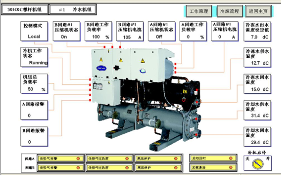b、冷水机组的运行参数监控和控制:如下图所示