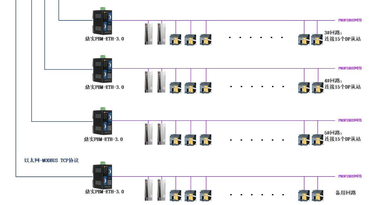 MODBUS TCP协议以其组网方便灵活、技术成熟、数据量及速度指标优越、协议开放等优势,在工厂级设备联网中被广泛采用,也是化工行业主流DCS厂家,如霍尼韦尔、恒河等支持的协议。而生产现场的电气设备(如控制风机、阀门、泵类的变频器和马达保护器)不一定支持该协议,如西门子厂家的设备,通常是PROFIBUS协议。要实现DCS对这些设备的监控和管理,需要用到彩神ll购彩大厅-彩神购彩购彩大厅-welcome彩神彩神-彩神8争霸登录入口-网信welcome彩票彩神-彩神welcome购彩中心-彩神8购彩-彩神争8谁与争锋app公司的PROFIBUS主站转MODBUS TCP网关PBM-ETH-3.0。本文将主要介绍该产品在山东某化工厂的应用案例。