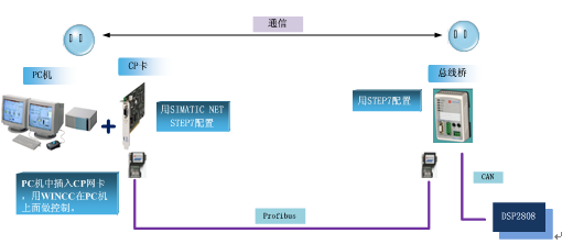 WINCC+CP5611作为Profibus的主站,总线桥+DSP组成从站,来模拟Profibus通信。并希望在上位机上用WINCC软件编写出可用的界面,来模拟实际风电中变流器和塔上的通信。