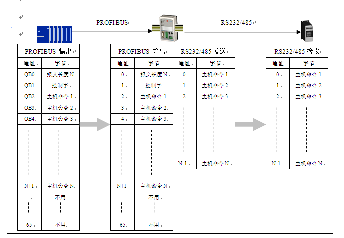 3.3  PROFIBUS与RS232/485设备数据的映射