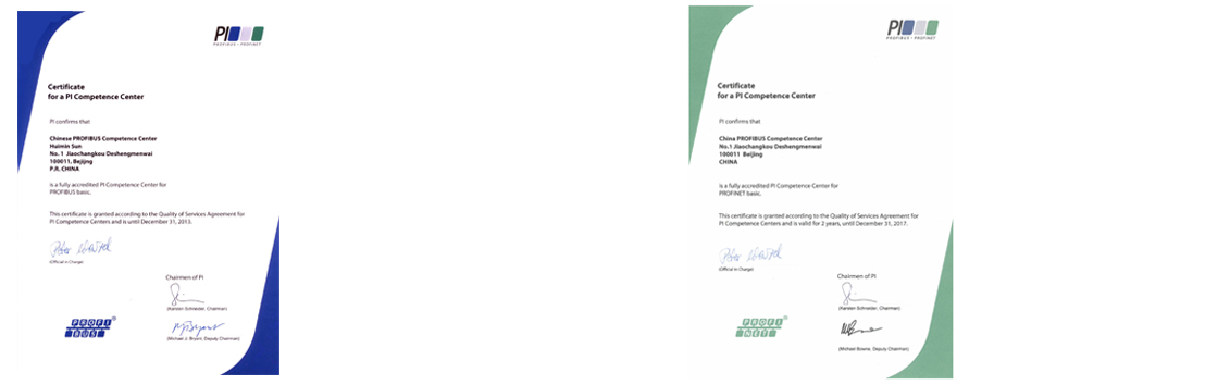 PROFIBUS——CPCC资格中心证书                                                             PROFINET——CPCC资格中心证书