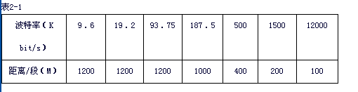 (5) 电缆最大长度取决于传输速率。如使用A型电缆,则传输速率与长度如下表2-1: