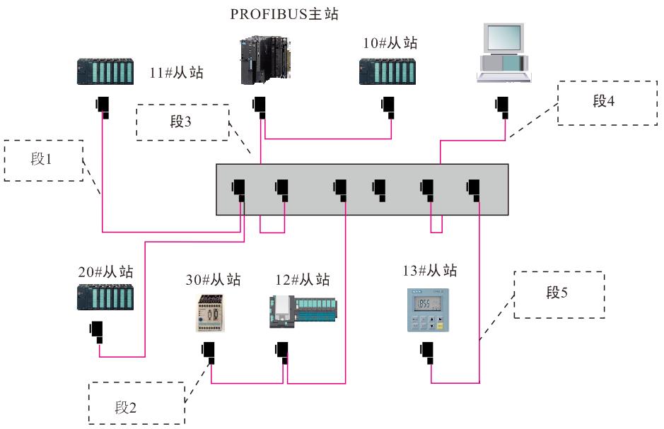 实现功能: 通过PROFIBUS集线器使分散的设备信号集中,改变原有PROFIBUS网络的总线型拓扑结构改变为树型结构,将所有从站分段网络并行连接到一起,再与主站连接。