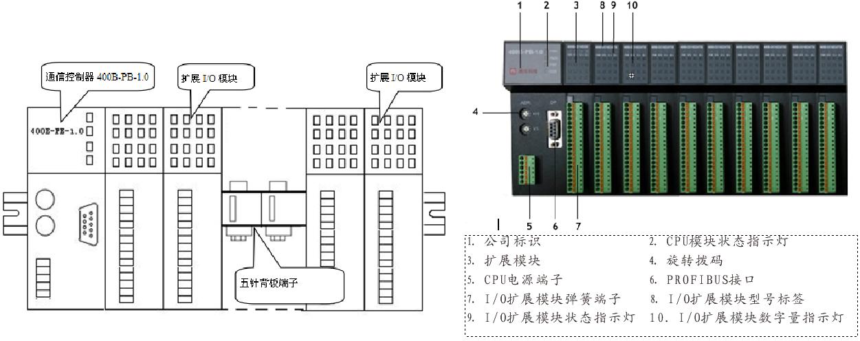 •高密:在通常宽800MM的标准控制柜中可安装多达25个IO模块,共计400DIDO(这便是冠名400B的缘由),宽度(适配器+25IO模块)=607MM。