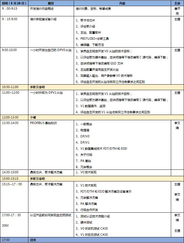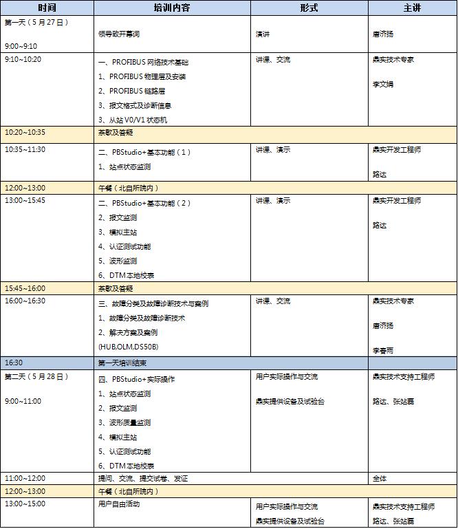 培训内容:PROFIBUS开发基础知识、自主开发DP/V0/V1(C1+C2)接口、通信故障诊断、FDT/DTM/EDD技术、自主完成认证预测试。
